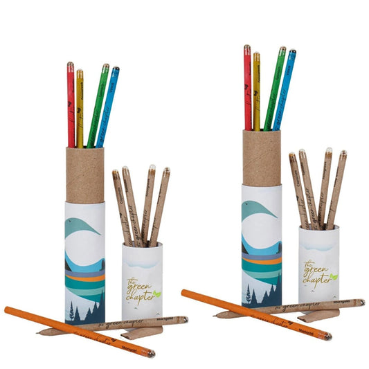 Pens and Pencils - 5 Blue Ballpoint Pens and 5 Seed Pencils Reusable Gift Tube Set of 2