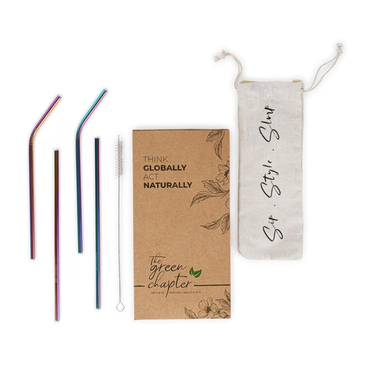 Reusable Rainbow Stainless Steel Straw Set with Cleaning Brushes and Travel Pouch - Eco-Friendly Metal Straws for Smoothies, Juices, and Hot Drinks - Set of 4