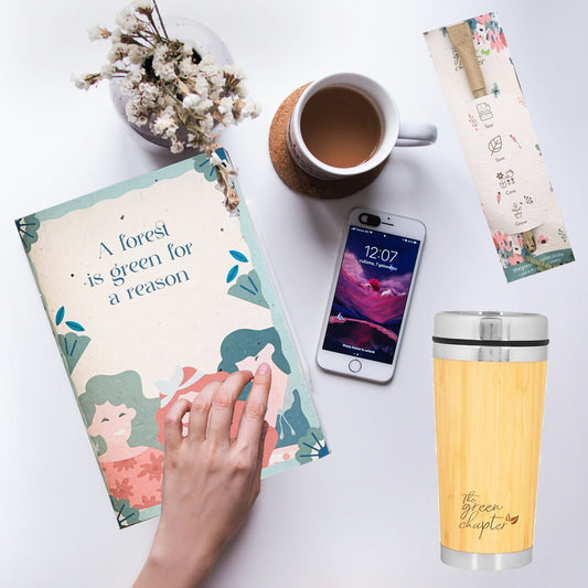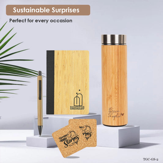 Sustainable Bamboo & Cork Office Set | Includes Bamboo Pen, Diary, Flask & Coaster | Perfect Eco Gift